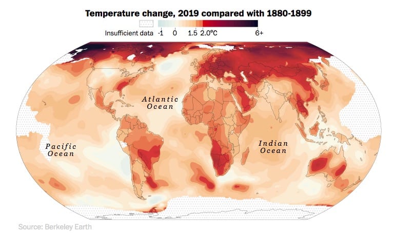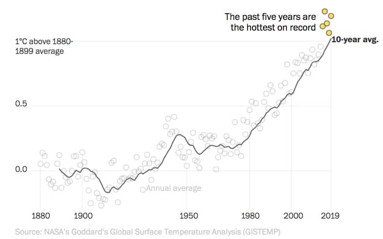 The findings, released jointly by NASA and the National Oceanic and Atmospheric Administration, detail a troubling trajectory: 2019 was the second-hottest year on record, trailing only 2016. The past five years each rank among the five hottest since record-keeping began. And 19 of the hottest 20 years have occurred during the past two decades.