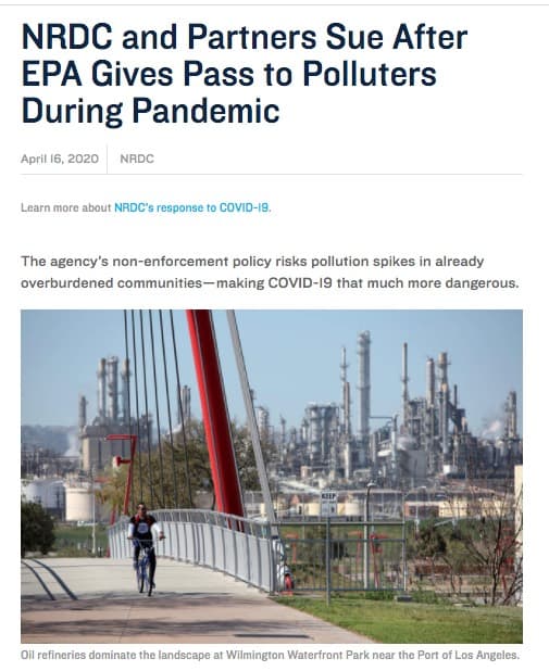 The EPA’s decision comes just as new research shows that long-term exposure to air pollution—which causes disease and weakens the respiratory system’s ability to fight infections—is associated with significantly higher death rates from the coronavirus in the United States. “Undermining these vital safeguards now also directly threatens the people hardest hit by the COVID-19 pandemic,” McCarthy says, “making it even harder to breathe and putting people with respiratory illnesses at even higher risk.”