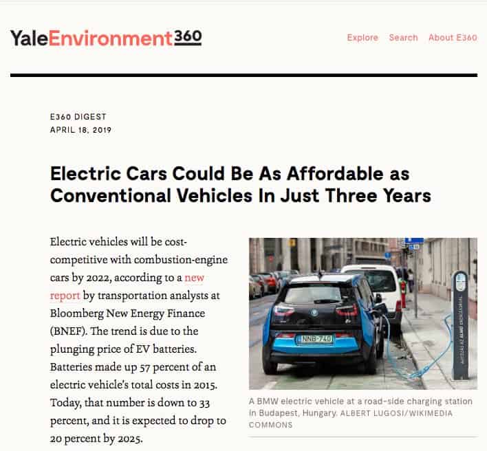 The electric share of total vehicle sales is still small, but it is rising fast. By 2040, projections show over half of all passenger vehicles sold will be electric. Thanks in part to the plummeting costs of lithium-ion batteries, within just a few years, EVs could cost the same or less as internal-combustion vehicles, and many countries (including China, India, Canada, and France) have announced plans to phase out gas engines by 2030 or 2040. On top of that, many cities are also committed to electrifying public transportation, and businesses are transitioning to electric fleets – with that kind of momentum, it’s likely just a matter of time before EVs are the leading form of transport.