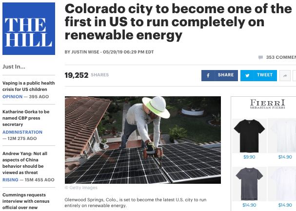 Glenwood Springs, Colo., is set to become the latest U.S. city to run entirely on renewable energy.