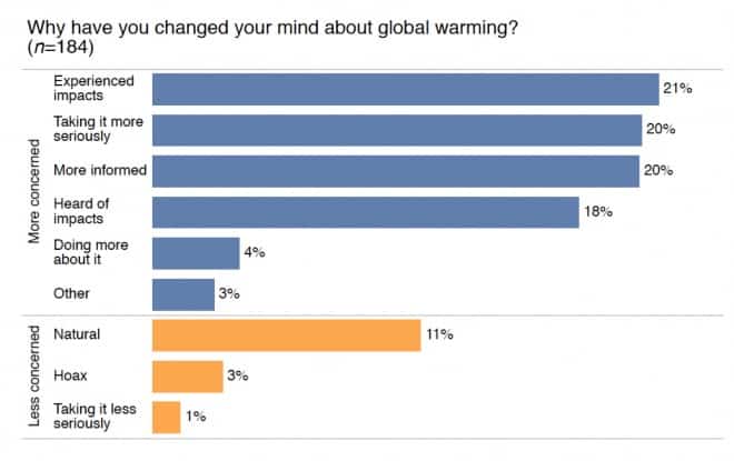 Researchers combed through open-ended survey responses and identified three main reasons why Americans were shifting their perspectives on climate change.