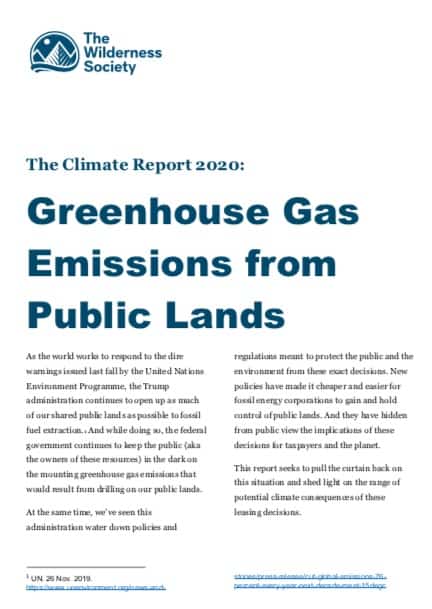 Our new report, The Climate Report 2020: Greenhouse Gas Emissions from Public Lands (https://www.wilderness.org/sites/default/files/media/file/TWS_The%20Climate%20Report%202020_Greenhouse%20Gas%20Emissions%20from%20Public%20Lands.pdf) shows that couldn’t be farther from the truth.